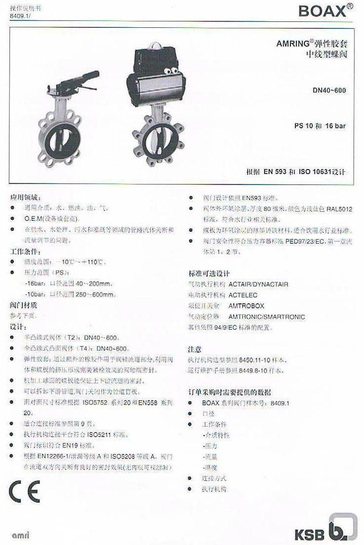 产品: 浏览次数:201BOA-X凯士比KSB对夹式蝶阀
